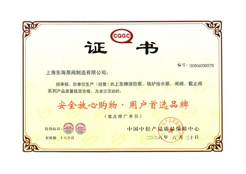 东海公司以健全的管理体系、雄厚的技术、先进的工艺、精良的设备、完美的检测制度和全面快捷的售后服务,赢得了广大用户的信赖和好评,并成为2001年的中国化学工程总公司定点生产企业,2006年荣获中国工程建设推荐产品合格供应商、上海化工协会成员企业,荣获全国星火杯创造发明竞赛金奖。如今东海产品成为知名品牌,其中衬氟耐腐阀门及水泵是本公司的特色产品,广泛用于石油、化工、制药、磷肥、食品、电力、冶金、市政、天然气、环保等行业,并畅销国际市场、“优良的售后服务,产品让客户满意”是公司永恒的追求目标,公司建立了定点售后服务、保障体系,合同签订后服务中心就启动工作与客户建立有效的沟通和合作渠道,合同履行完毕后,继续向客户提供优质廉价的产品配件及技术指导服务,本公司不断努力、不断创新、以不断的优质服务为新老客户尽心尽力。东海人以专业泵阀技术与设备、细致周到的服务,将永远成为您实业上良好的供货合作伙伴!